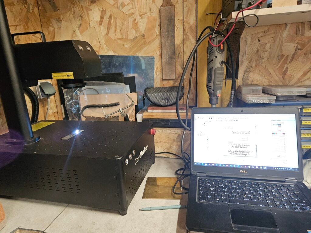 L’atelier c’est doté d’un graveur laser 30W à fibre. Cela permet de personnaliser les lames en ajoutant un nom, une date, un logo, un évènement, …