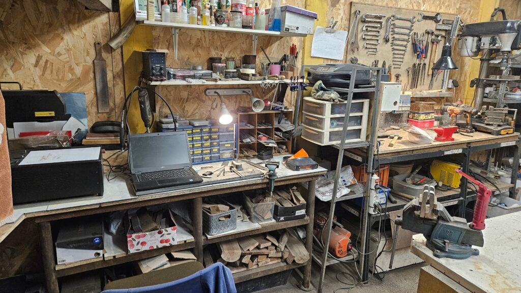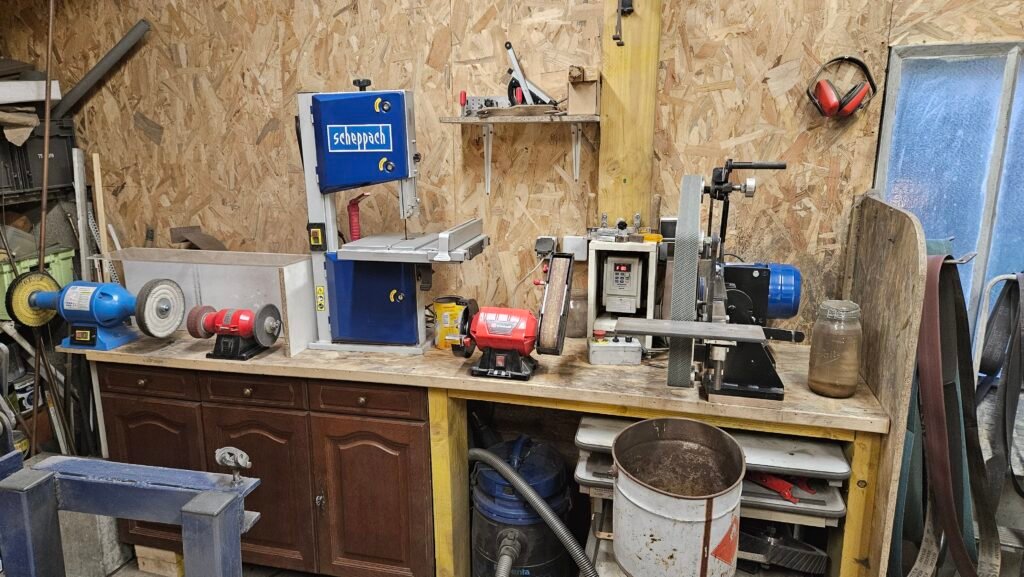 J’ai alors commencé à apprendre en autodidacte, forgé mes premières lames, expérimenté des outils et construit mon propre atelier. J’ai fabriqué mon backstand, acquis d’autres équipements indispensables, et, au fil des années, affiné mon art. J’ai également eu la chance d’apprendre auprès de forgerons expérimentés, qui m’ont transmis leurs techniques et leurs connaissances sur les traitements thermiques et les aciers.